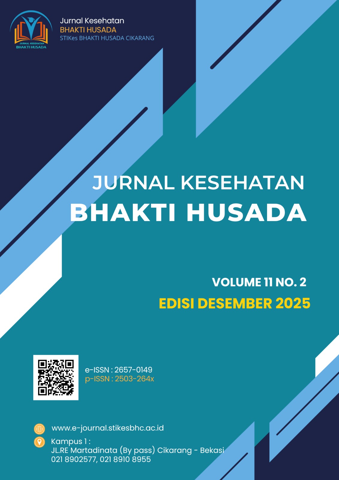Alhamdulillah, volume 11 No.02 tahun 2025 Jurnal Kesehatan Bhakti Husada berhasil kami terbitkan tepat waktu. Hal ini tentu tidak terlepas dari semangat membangun bangsa yang dimiliki oleh para akademisi dan praktisi serta civitas pendidikan kesehatan pada umumnya, serta dukungan berbagai pihak yang tidak dapat Kami sebutkan satu per satu. Kritik dan saran masih sangat Kami butuhkan agar apa yang telah Kami lakukan menjadi semakin lebih baik. Besarharapan kami, sumbangsih ini berarti untuk bangsa.